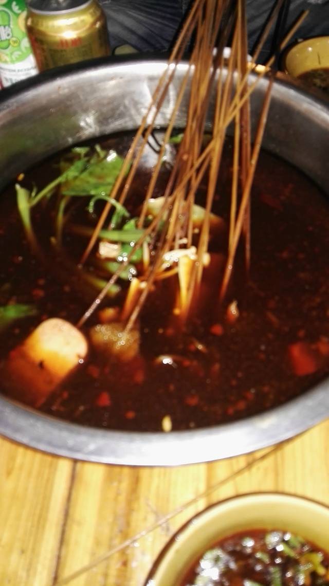 晚上跟一起住青旅的小伙出来溜达,走到文殊院附近的一个招牌竟然叫厕所串串,试试看感觉很不错,就是有点太辣,不过这应该是成都的统一味道吧。