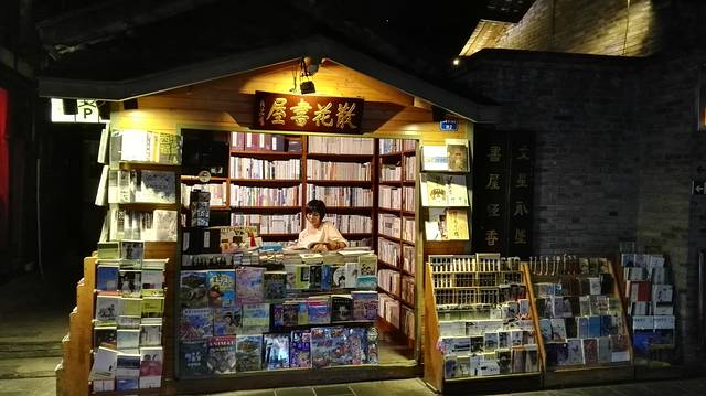 回到客栈,夜色以深,就着夜景在宽窄巷子里随意溜达,看到一堆灿烂霓虹的酒吧的招牌中有一木质书屋偏安一隅,散花书屋的招牌下,一个美女店员在安安静静的读书。买了本杂志,回客栈休息。顺便预定了川博、武侯祠、金沙博物馆和川剧的电子票。