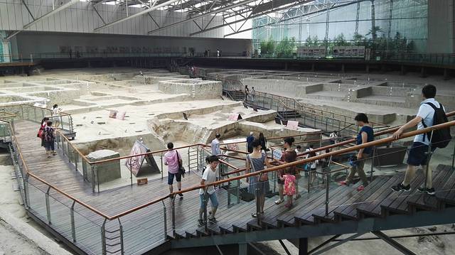 一碗肥肠粉一个火烧解决早餐,地铁二号线直奔金沙遗址,电子票只能在正门换,门口可以请解说员,时间太早没有成团的解说,只好自己进去看,结果发现可以用微信扫码听解说,科技改变生活。从遗址、遗迹到文物最后到动画成像电影馆差不多要2到3个小时。一直认为太阳鸟是个金盘,看了才知道是个比金箔略厚的金箔剪纸。