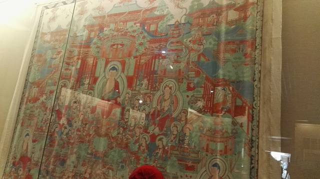 随意解决了一下早餐,直奔四川博物馆,其位于浣花南路,从宽窄巷子乘58路车去,比较方便。到了川博,先去领了预定的电子票,博物馆是免费的,但是每天上午和下午的接待人数是一定的,领完即止。进去后直奔大千馆,有志愿讲解员,讲得非常好不必花钱,系统的讲解了张大师的生平和作品。大幅叙事画和佛像画相当的震撼。看完大千馆后建议主要游览汉代陶石艺术馆、工艺美术馆、青铜馆。