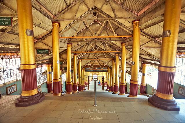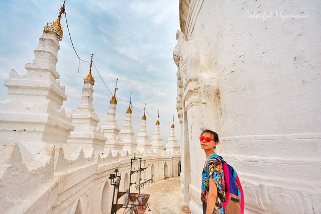 这座佛塔也是一座五层佛塔,并且有一条台阶直通最上面一层,但我必须要说,这是我来缅甸见到的最美丽的一条台阶了,上面的拱门加上纯白的颜色,结构感特别棒有木有?再加上长腿美女一枚,赞啊!