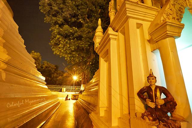 在这里,我们再次见证了缅甸人民的虔诚之心,这位女士就这么坐在这里祈祷了得有一个小时,我们都转了两圈了她还在这祈祷呢,和着灯光和树影,还有佛塔的塔基,这个场面无比神圣!
