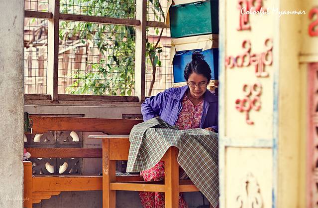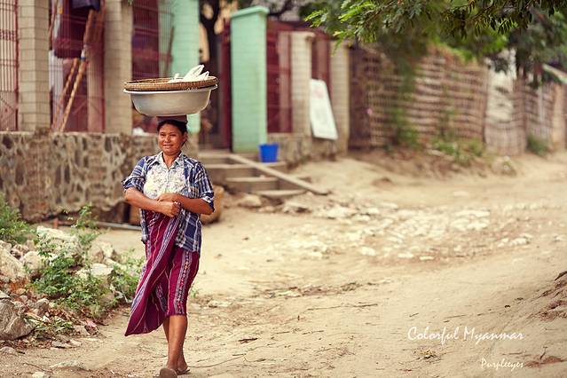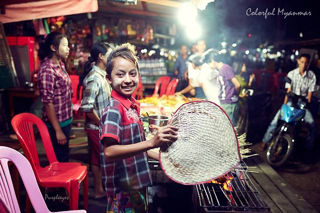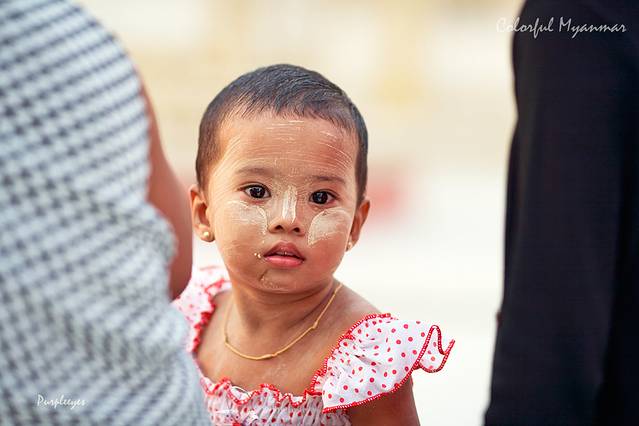 拍完喵星人,我一扭头突然发现有个小盆友一直在看我,那小眼神儿专注的呀,那正好,给你也来一张吧!在这里请注意她的小脸儿,这就是著名的缅甸纯天然自制防晒霜:“特纳卡”,它是由黄香楝树磨成的粉,缅甸的每个人都会抹它,不管男女老幼。虽然街上有很多地方都卖这种木块儿,但是特别爱出汗的我最终还是没有尝试抹它,估计下次来了可以试试吧。