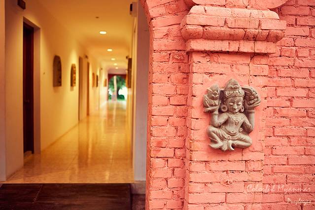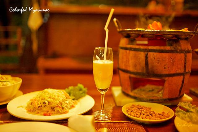 Green Elephant据说也是一家主要向外国人开放的餐厅,改良缅甸菜,我们到的时候大概是一点半,估计因为过了饭点儿了,一个客人都木有。我们被带到了后面的一个开放式餐厅,那里面除了吃饭的地方以外还有一个小小的舞台,舞台上放了一个绿色的大象木偶,就跟我们在仰光看到的那个木偶一样的,看来这就是餐厅名字的来源了。接下来就是饭菜的问题了,这里的菜色味道很一般,价格也不便宜,看来真心是除了蒲甘,木有地方能吃顿好饭了。。。。