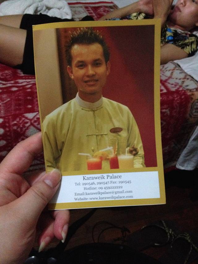 3、缅甸人民英文真的很不好,文字又差异太大,所以出门前最好请服务员帮忙写好要去的地方,或者车啊神马的,以便问路。
