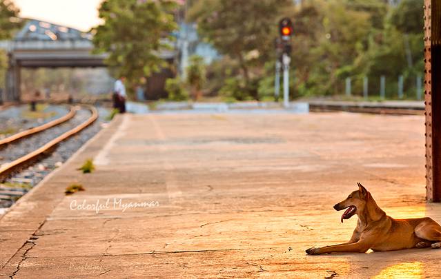 站台上除了以各种形式携带各种行李的人群之外,还有很多狗狗,和所有热带地区的狗一样,他们是瘦长滴。我估摸着它们聚在这里是因为食物会比较多吧。为了给它拍这张照,找阳光的角度,我还被它吼了两嗓子,一副不乐意的样子~~