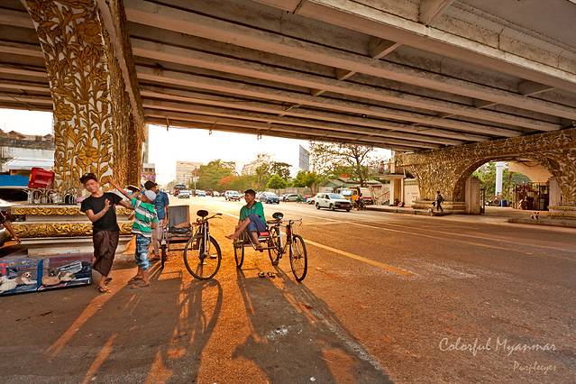 这一天很快就在路上就这么过去了,在下午六点半的时候,我们到达了仰光的大巴车站。本来一切都很顺利的,结果打车的时候犯了个错误,找了一个不靠谱的司机,不但跟我们要高价(当然被我们砍下去了),而且还拼车!还绕路!导致我们八点多才到达旅舍,郁闷!
