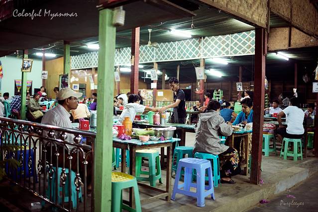 曼德勒山失败了,我们就只剩下去吃晚饭了。。。看了一下,最近的网上推荐的一个缅甸本地才要的餐馆大约需要步行半小时,反正下完雨很凉快,就溜达过去好了。
