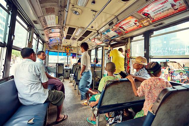 接着我必须得说,这里的公交车,真是跟孟加拉的有一拼啊!看看这破的!好在车票超便宜的才200缅元,合人民币一块二吧,虽然木有帝都的公车便宜,但也不错了。