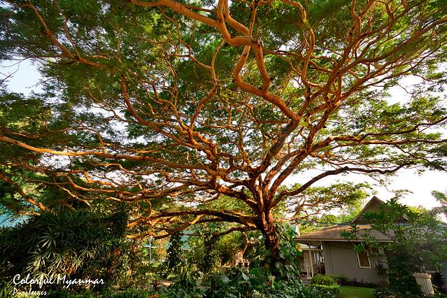 由于昨天晚上乌云盖顶,所以我今早放弃了拍日出,放心滴睡到7点起床,然后我俩去吃了丰盛滴自助早餐,早餐厅的门口有一棵树,拥有一个超级大的树冠,在晨光下闪闪发光,在这里其实完全感受不到蒲甘的酷热、干燥和飞沙走石的环境的。