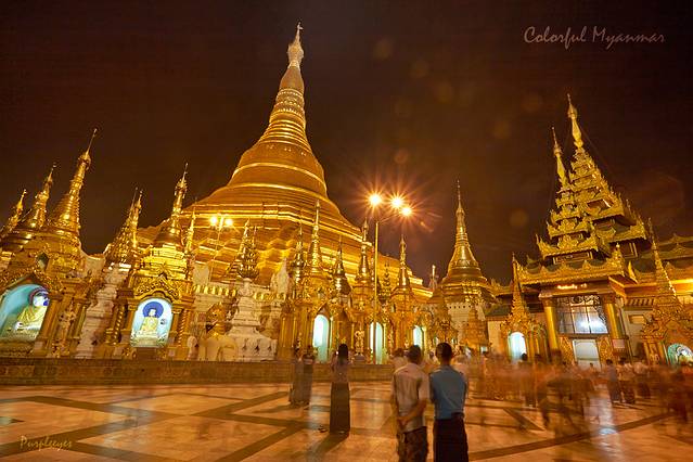 这个地方其实不能仅仅叫做大金塔了,而是一座由好几百座金塔组成的金塔群,简直太壮观了!绕着它走一圈就得至少二十分钟啊!当然,参观的人也无比的多,我们在大金塔绕圈的时候,周围都是汹涌的人潮,简直跟逛西单王府井似的。幸亏今天背了三脚架,才可以把汹涌的人潮虚化,必须再说一次,真的很壮观!