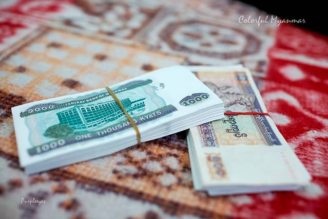 衣服换好之后,我们第一件事儿就是换钱,在来之前查攻略的时候我们就知道这里换钱的地方不是很多,而且缅甸钱是不允许带出国境的,所以只能到了以后再换钱了。这时候的汇率是1缅甸币=0.006人民币,所以等俺们换完钱之后,钱就变成了如此厚的两摞,赶脚一下子就变土豪了有木有?
