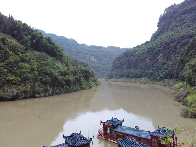 从沐川返回到犍为,已经是下午3点多了,把车开到桫椤湖已经是4点左右了。从犍为开到马庙乡(桫椤湖所在的地方),路况还行,就是弯特别多,有些也很急,一路上山,快到马庙乡全是下坡,弯道。到达马庙,买了船票去桫椤峡谷,一人30元,来回就是60元。我们去的有点晚了,到了峡谷,走了一小段就返回了。峡谷里很多桫椤树和竹子,景点我们一个都没有看就返回了。坐在船上看到的风景还是不错的。但是我觉得60元来回的船票还是有点贵!在船上,打听到游玩嘉阳小火车的最好方案:把车开回县城,住县城,第二天一早坐公交车到小火车站(三井)坐小火车,到芭蕉沟,坐观光车回马庙,坐马庙的班车回县城。小火车不建议坐往返,一是往返价格贵(130元),二是没意思。只有从三井那到到芭蕉沟的会在各个景点停靠,拍照,返程就不得停了。7点多开车回犍为县城,在车站附近找了个酒店,在去哪儿网上定的,还可以返现。外面看酒店高大上,但房间设施不行,太陈旧了。