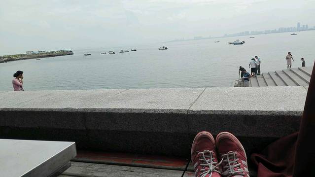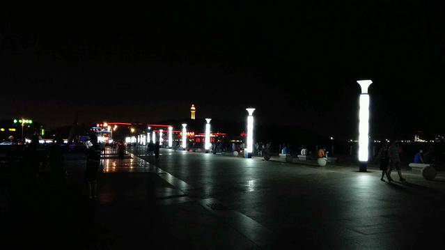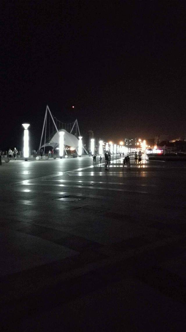 就是沿着海边的广场,可以跳舞体检放孔明灯,我们正好赶上了祭财神还有放花的。夜景很美,远处灯塔,近处高楼大厦,就是天黑,小心地滑,我就耍了一下,摔得一身海蛎子味儿