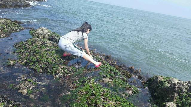 还是昨天晚上的地方,我本打算看日出,可是阴天了。于是只是早起去溜达溜达。对了,可以赶赶海,翻翻石头,有小螃蟹哟!