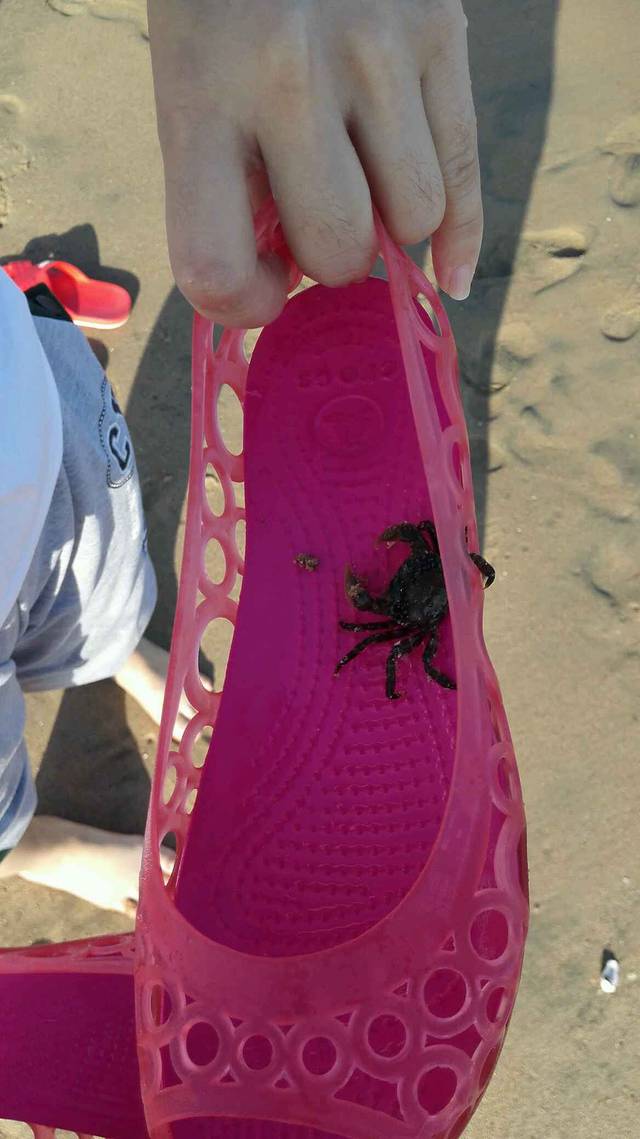 一路都是好天气,荣成的路起起伏伏,到了荣成,第一件事就是大海。从宾馆打车去,司机开的很快,不到十分钟就到了。看大海。我们还抓了螃蟹不是一只,是很多小沙蟹,还可以做快艇大概50一人,人多可以砍价,不要客气,就那么小小一圈,不砍都觉得亏。