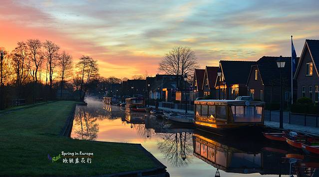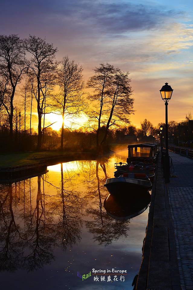 与其到羊角村走马看花、行色匆匆,不如在这个荷兰水乡小镇安住几晚。每天清晨起来,可以看到日出如炬,红霞漫天。清晨的羊角村空无游人,静静地走在小村的街道上,往返穿梭于密如蛛网的运河木桥,独享早春晨曦里的美景,是值得恒久珍惜的旅行体验。