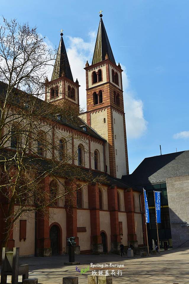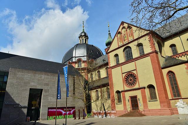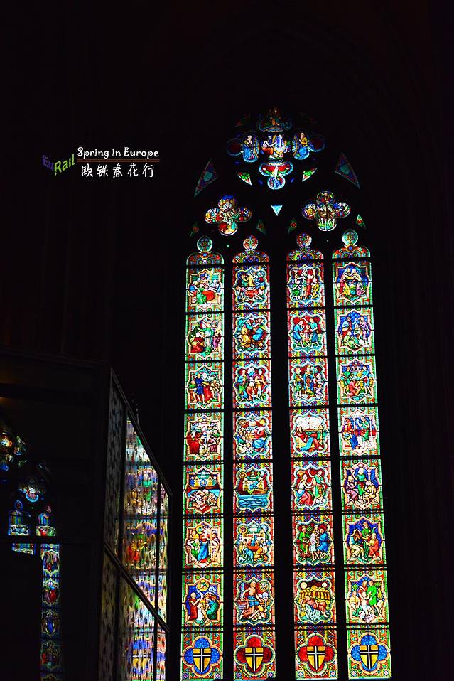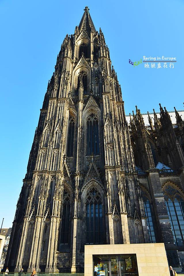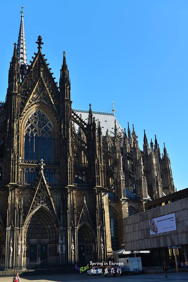 科隆大教堂的南门,林立高耸的塔尖,繁复的精雕细刻,确实是建筑史上的杰作。一旁的低矮建筑是罗马-日耳曼博物馆(Römisch-Germanisches Museum),这是一座考古学博物馆,收藏了大量科隆地区的罗马时代的考古文物。该博物馆开业于1974年,拥有世界上数量最多的古罗马时期的玻璃藏品。门厅内外展出的雕塑和废墟充分反映了莱茵河沿岸最全面的古罗马手工艺品收藏。