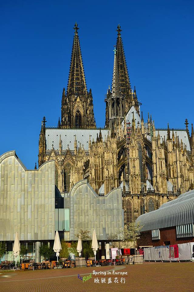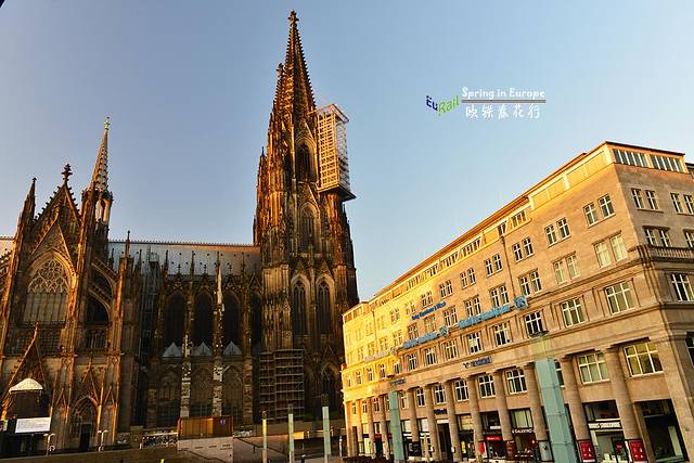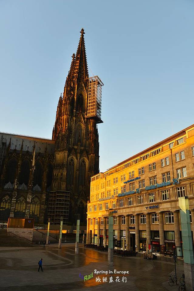 晨起,朝阳把科隆大教堂的尖顶撒上了一片金色,可惜教堂的主塔正在维护,不过那种雄伟还是摄人心魄的。如果朋友们搭乘欧铁到科隆,推荐就入住IBIS吧。酒店的房价里不包括早餐,早餐要价每人15欧就有点贵了,不推荐——因为火车站里有好多咖啡厅和快餐厅都提供美味的早餐呢,价格要亲民很多。