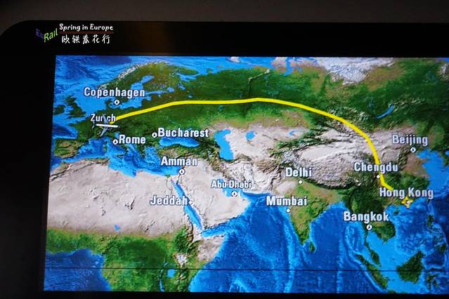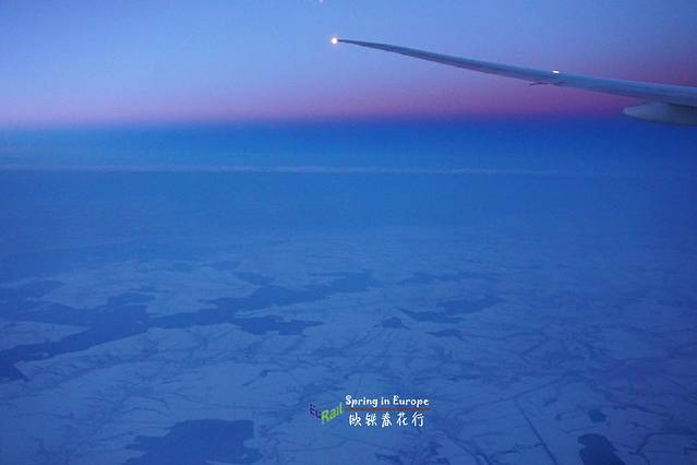 国泰航空的CX383航班,晚点差不多半个多小时飞离香港国际机场,客舱服务人员尽快提供了晚餐后就关闭了机舱灯让大家休息。等我一觉醒来,天色已经黎明,此时飞机应该还在广袤的俄罗斯大地上。