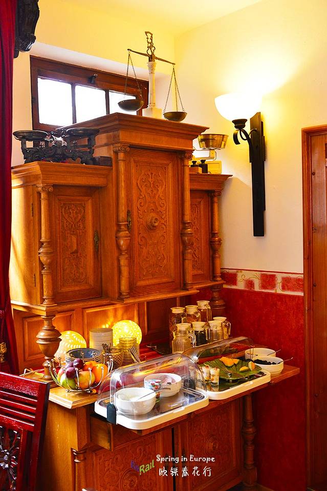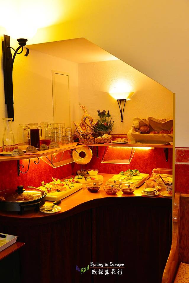 酒店两晚的住宿费是170欧,还包含了双早,价格是蛮优惠的。这就是酒店一楼的早餐厅,早餐还是很丰盛的,我们的客房就在餐厅的楼上。