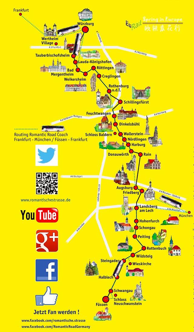 D05,德国的浪漫之路,北头是福森,南端就是维尔茨堡——美茵河边的古城。