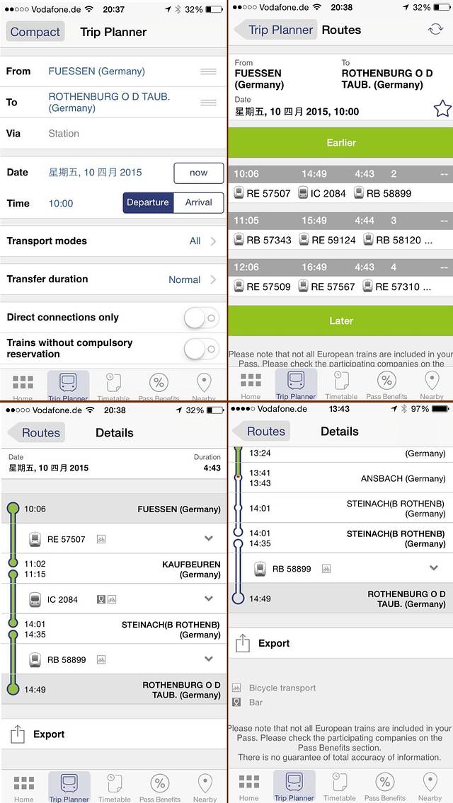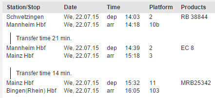 事实证明,德铁官网的信息非常准确,依照它提供的站台去换车很精确,减少了路途中不必要的差错。