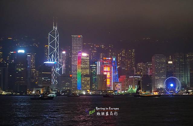 维多利亚港的夜景是迷人的,可惜当晚是一个阴雨天,空气的通透性很差,而我的三脚架也随着行李直运了苏黎世,因此所有的照片都是手持拍摄,无法达到相应的水准,不过夜色阑珊,南风熏人,也是醉了……