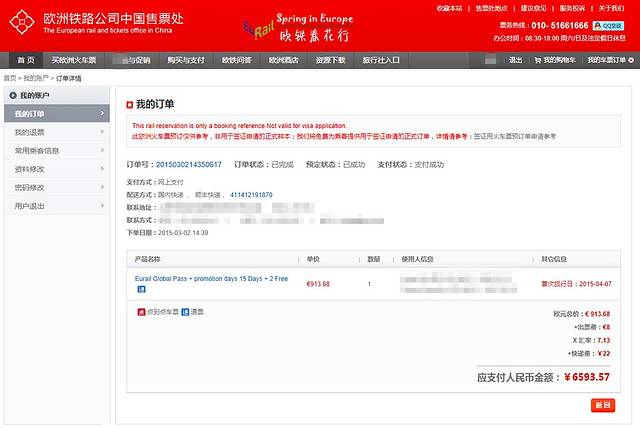 现在,在国内购买欧洲通票已经是非常便捷的事情了,欧铁公司在中国有好几家官方的代理机构。通过询价比较,还是“欧洲铁路公司中国售票处”的售价最为优惠,而且服务也蛮不错,因此最终选择在它家购买欧洲通票。
