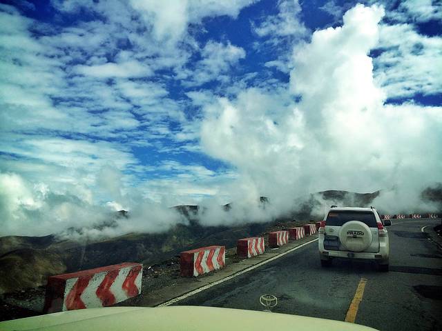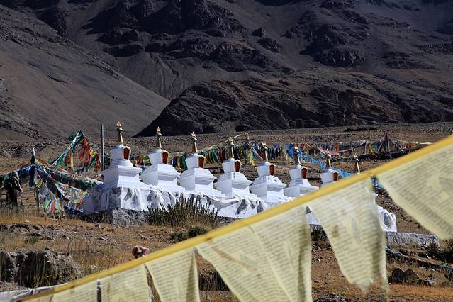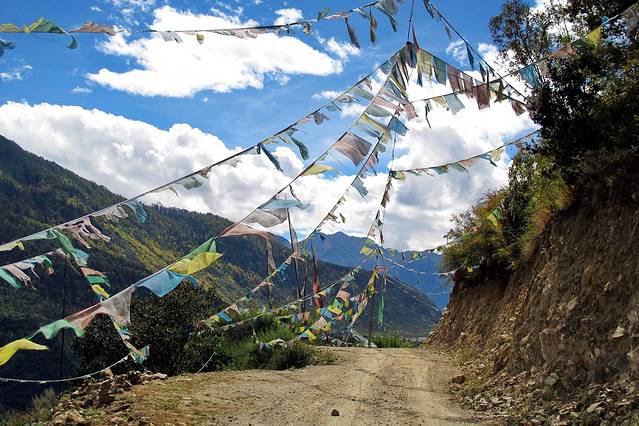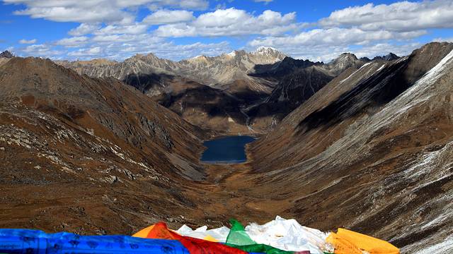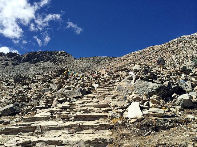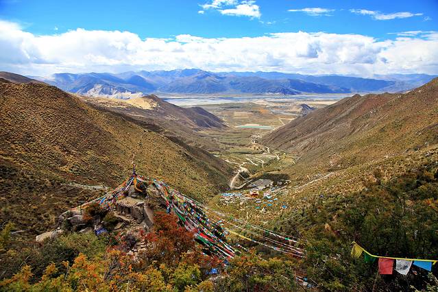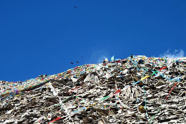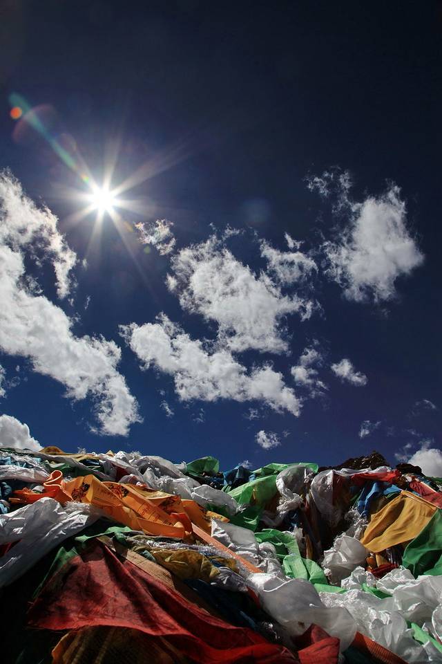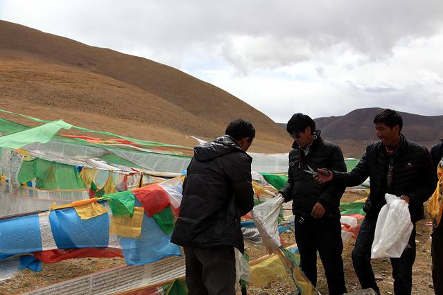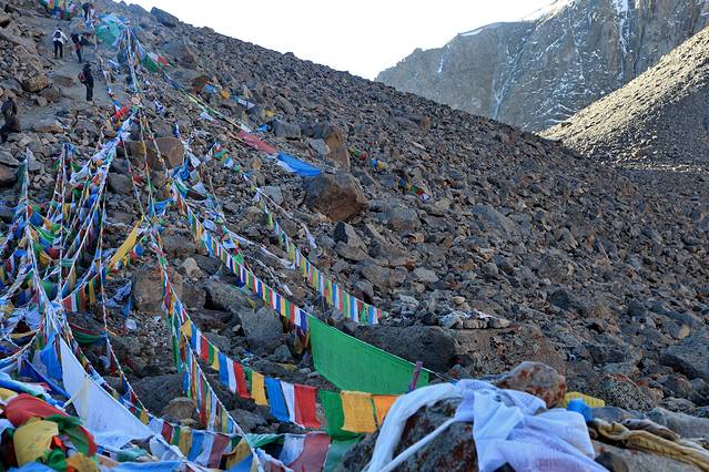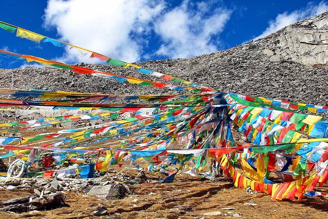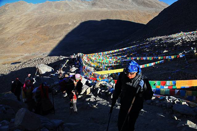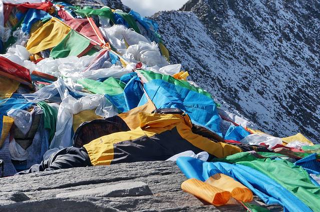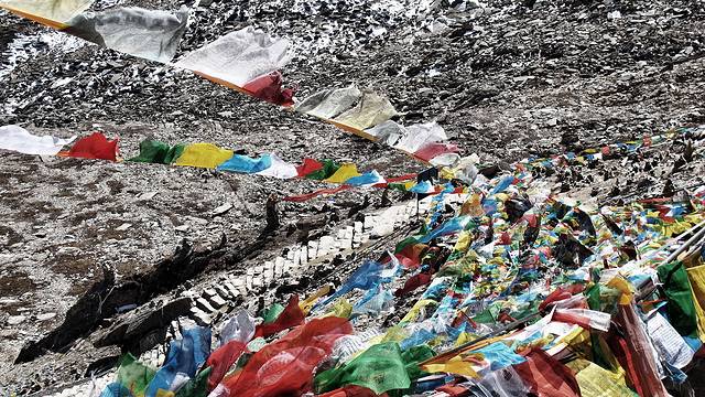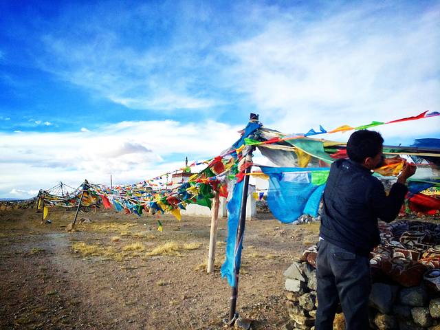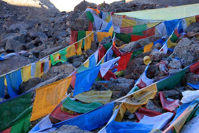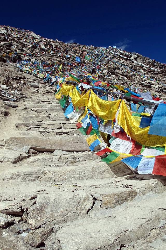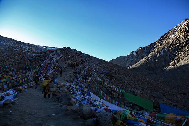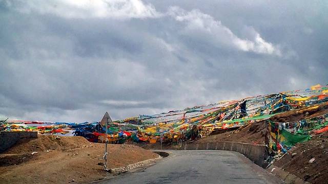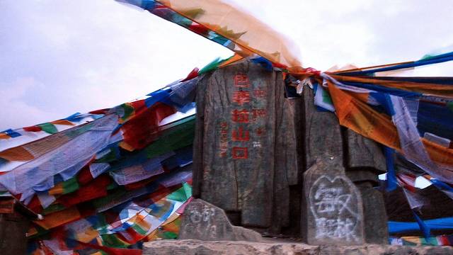 经幡预示了山口的到来。可车速太快,垭口瞬间秒过。