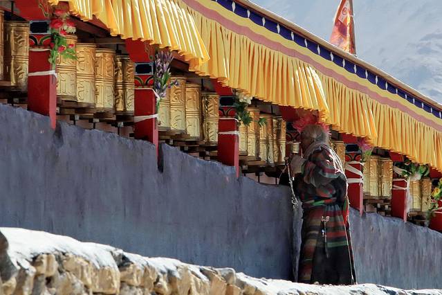 他看着这座伟大的寺庙,我想象着当年宗喀巴大师选址这里弘扬密宗佛法,他的发心也是利益众生,愿众生可以打破六道轮回,使众生得到解脱。现在,很多很多的佛教徒都在做着同样的事情。