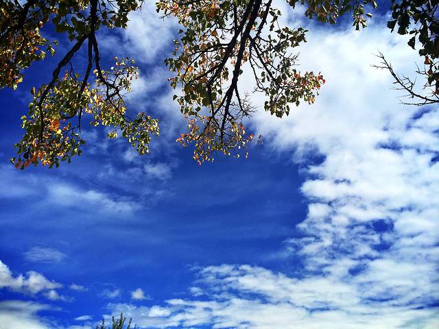 艳阳下的树叶,恰似五彩缤纷的糖果纸,好看极了!