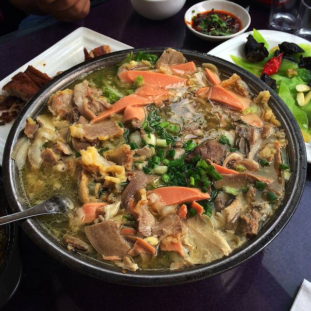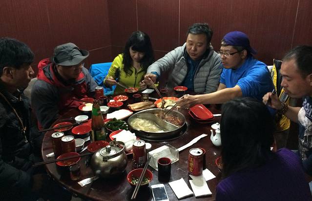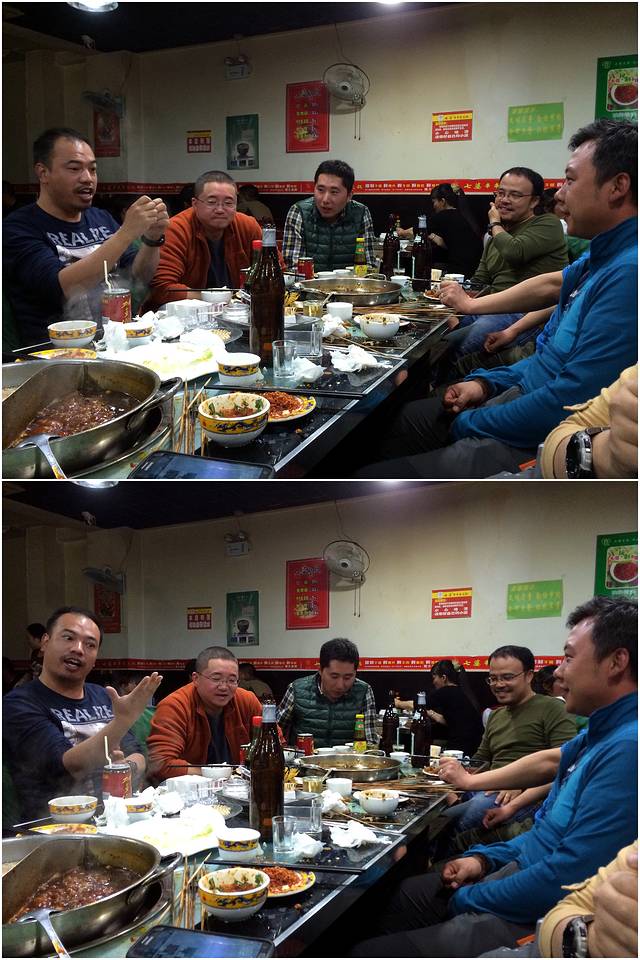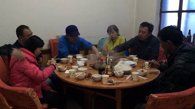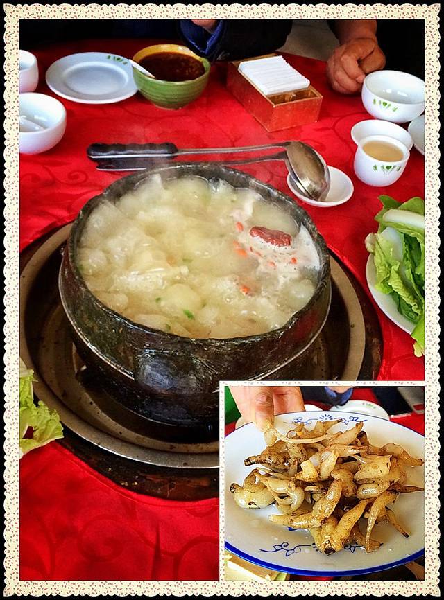 一上嘴,嗯,鲜,汤味很鲜!一咬鸡肉,妈蛋,根本不是土鸡。这一比,出了结果,那家米林石锅鸡店的鸡肉非常鲜嫩,好吃,这家店也还不错,但绝对比不上正宗的土鸡味儿。不过,作为石锅鸡的食客,我已经非常满足了。尚小弟他们在吃完石锅鸡的汤中下了一盘饺子面,占着辣料当做晚餐,吃得也很过瘾。