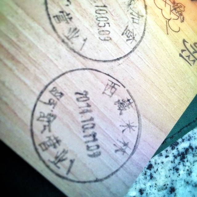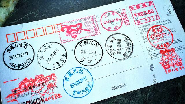 两个小时后,我们进入了八一镇。13点19分,我在牦牛广场下车。与谢大哥的朋友尚小弟约定,我们在这里碰头。不多时,一辆车将我接上,一行四个人跑去吃了川菜,他们陪我盖完“八一”的邮戳,买了张相机的CF卡,我们齐齐出发鲁朗。