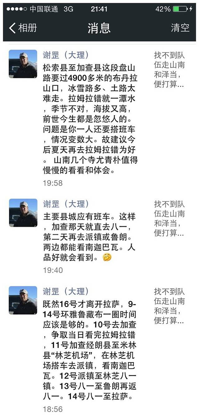 十点整,我回到了兄弟客栈。犒劳肚子,饱食了一餐稀饭、馒头后,一位姑娘邀我一同拼车去八一。十点半出发,我应允了。可等了许久,待车来了,一瞧,原来说的八人座瞬间变成了五人座。这样不行,另想办法。重新找车时,寻到班车点,依着墙上贴出的班车师傅的联系号码拨打电话,被告知得下午两点才有一班车去八一。正打算等三、四个小时随意逛逛,谢大哥的电话到了。他提及八一的朋友下午两点想去鲁朗走走,问我啥时候到八一,否则可以一同前往。我好心动,打起了搭车的主意,跑到停车场旁的路道上寻车。还说,运气可真好,两分钟没到,一辆藏A牌照的私家车正巧迎面开来。一打搭车的手势,车停了,车上的四人一致同意搭我,转眼间,我就顺利出了派镇。原来,他们昨晚在兄弟客栈见过我,就搭上我了。哈,好运连连,幸福事儿多多......坐在车上,回应谢大哥已经上车,中午就可抵达八一,想着今天竟然还可以在色季拉山口再见南迦巴瓦,还可以、还可以吃上石锅鸡……简直觉得顺风、顺水、顺利,幸运到无边。人生或就是这样。当美得一塌糊涂时,就得防备乐极生悲的发生。