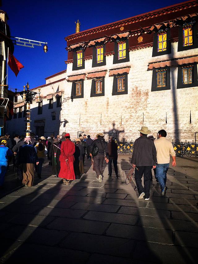 师傅:“你不是确定去布宫或大昭寺吗?那就上车先去布宫嘛!布宫离大昭寺1公里。布宫10块,大昭寺15块。”