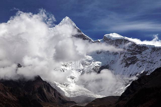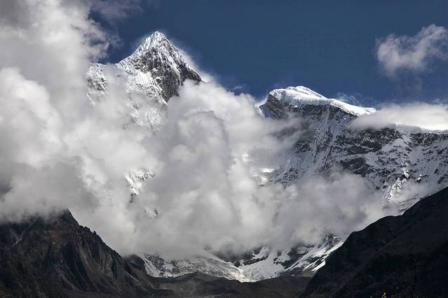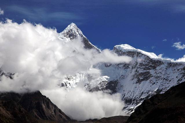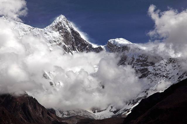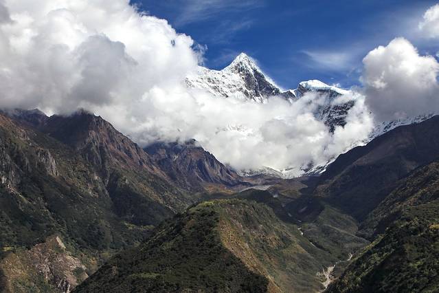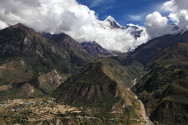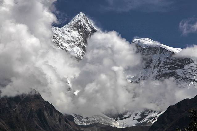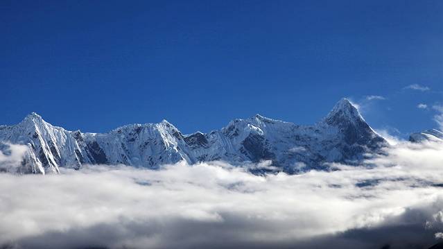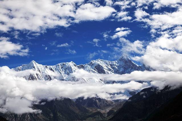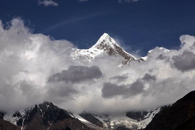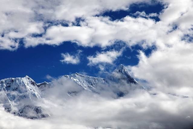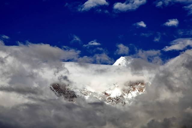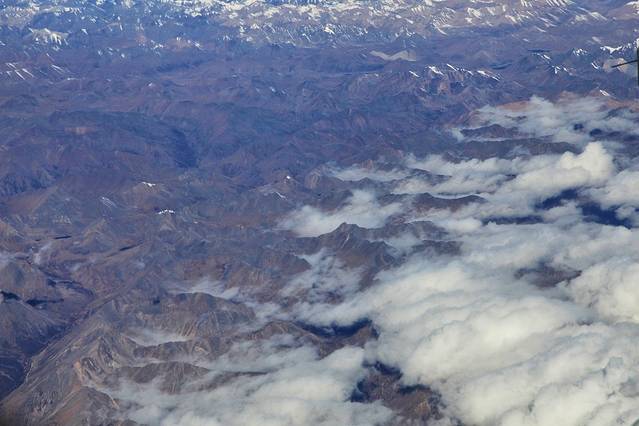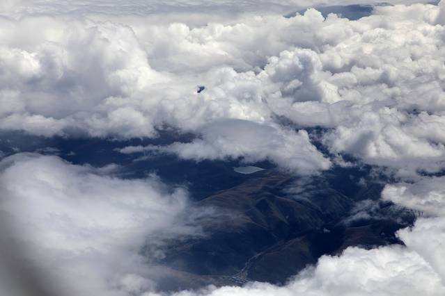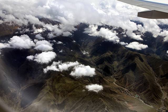 曾听无限星空讲过:从成都飞拉萨的航线,大致是沿川藏南线的线路飞行,途中可观数座知名或未知名的雪山,尤为我钟爱的南迦巴瓦峰也可从高空俯瞰。可郁闷的是,自打出成后,云雾就抢占舞台、独领风骚。也罢,死心,睡觉。