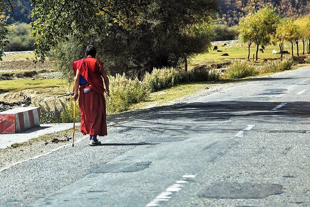 不时见到在路上走着的人,有喇嘛、有徒步的行者。他们的步履稳健,安安静静,不急不躁,非常坚定。如果我们可以以这样的姿态走在我们每一天生活的路上,我想这每一天都是成功的。