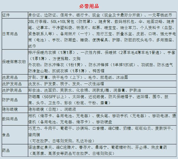 一周之前,可提前吃红景天胶囊应对高原反应;携带墨镜+防晒霜+补水面膜,防护高原干燥与紫外线;备好防高反药物,除高原康、高原安之外,推荐我每次进藏必备的葡萄糖针剂,既能及时补充体力,也可缓解高反,效果很不错......高原并不可怕,高反是身体应对高海拔气候正常的反应与调整,只要具备足够的心理与药物准备,放松心情,必可让你欢乐地徜徉在日光之城。更何况拉萨、日喀则、八一等西藏重要城市具备了相当的医疗水准,不用过于担心。