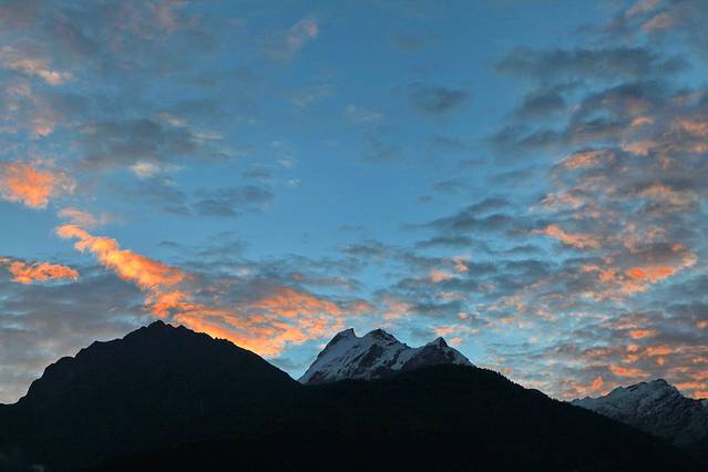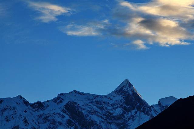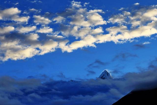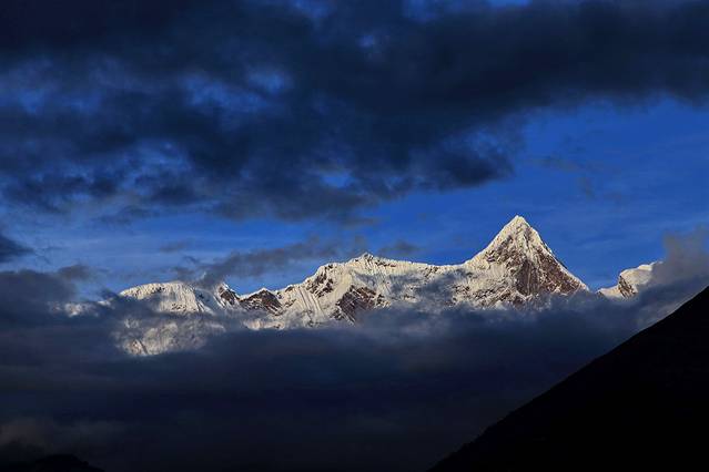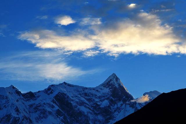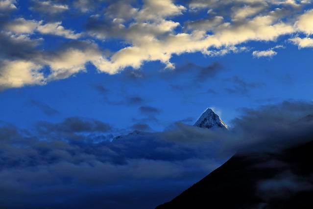 18点46分,乃彭峰在微露的天光中金色流离。