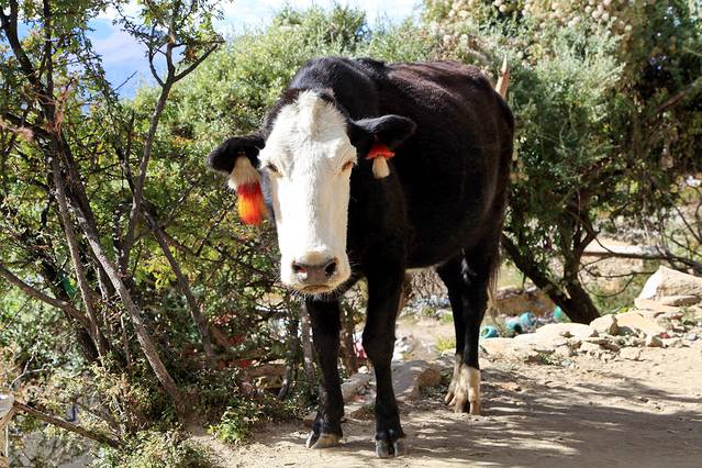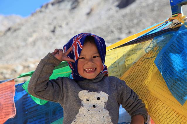 60升的背囊在后,中包在前,包包在手,黑了一层又一层的梅朵出现了。我给她取了一个新的名字,叫做“黑朵”。谢大哥为我定格了这个黑黑的藏家姑娘。