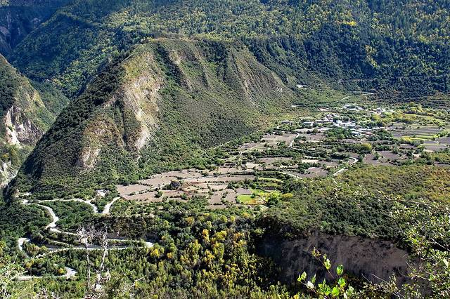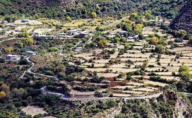 在一处,尚小弟叫停了车子,往后跑了几步。我跟随他,也跑到了他所在的地点。从这里往下往远看,是一处山脚下的村落。尚小弟说,若此时有阳光的光芒点亮这些村落,我们所见的,就是一副动人的画卷。我看看天,美希望,厚重的云层正占据着天空。