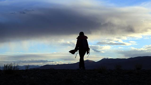 我与尚小弟拢起了单薄的衣服,等尽最后一丝希望......却在逐渐暗沉的天色中渐渐沮丧。尚小弟也很懊恼上山之时该在途中喊停,拍上几张,收藏起最后的日落南峰。而我清楚,他太希望在山口最好的位置看到一个全景,给出自己最后的完美画面。而今天,我们都尽力了。晚上七点半,我们决定撤退。他上了车,我则奔到垭口“色季拉山口”的大石旁,与这块见证我一次次前来、记录我不同心境、状态与感受的“老熟人”合影一张。这里,留有我太多太多的心路历程。