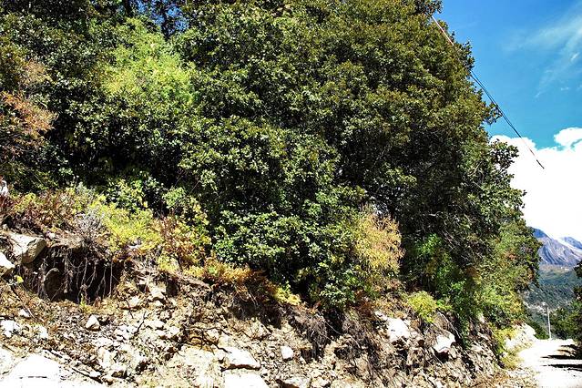 车上的三男一女是一个单位的同事,都在拉萨上班,几天前从拉萨自驾来林芝游玩。开车的是一个长得极有女汉子风格的女孩子,开车如风,说话噼里啪啦,还说得特逗,像讲相声一样。看着GPRS会说:“这里就两条路好吗?走错一条,现在,额,跑河里去了~~~”;瞧着大路修路,不让走,立马不高兴:“干什么?这么好的路就不让走啦,真讨厌!”常惹得我闷头大笑。从他们彼此间的对话中,我感觉他们有可能是军队的后代,不然哪里有什么部队、部队的位置有什么风景怎么会知道得那么清晰,过检查站时,限速单还少开了20分钟等等。我静静地观察着他们,对他们充满好奇。