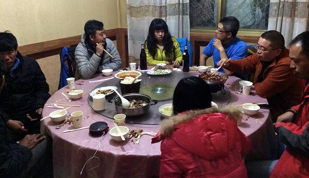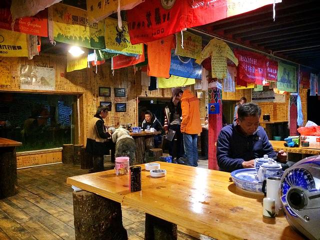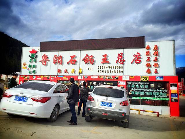 17点20分,下山后,来到鲁朗。建起的“石锅鸡一条街”上全是石锅鸡的店招牌,密密麻麻的,约莫3、40家,商业味道极为浓重。各家店在广告词上各种使招、彼此较劲,有说电视台推介的、有写“石锅鸡原创,一直被模仿从未被超越”~~~我们找了一家号称“鲁朗石锅王总店”。2012年,我们三位姑娘在冰天雪地的鲁朗吃了一顿极为鲜美的鲁朗石锅鸡,由此开启了我对“一听石锅鸡就淌口水”的条件反射与不断向往。前两天赵小弟带我去的米林石锅鸡不亚于第一次的完美记忆,今天商业化十足的鲁朗石锅鸡会超越米林石锅鸡吗?我拭嘴以待。