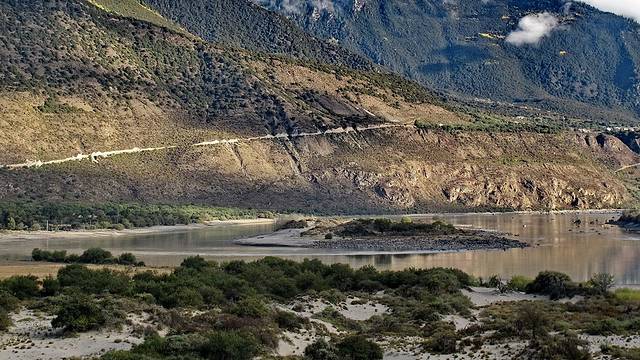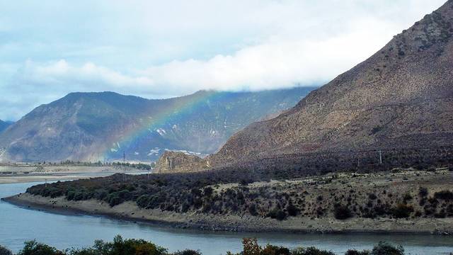 壮丽的雅鲁藏布江以欢沁的色彩与优柔诱人的身姿迎接着儿女们归来的身影。