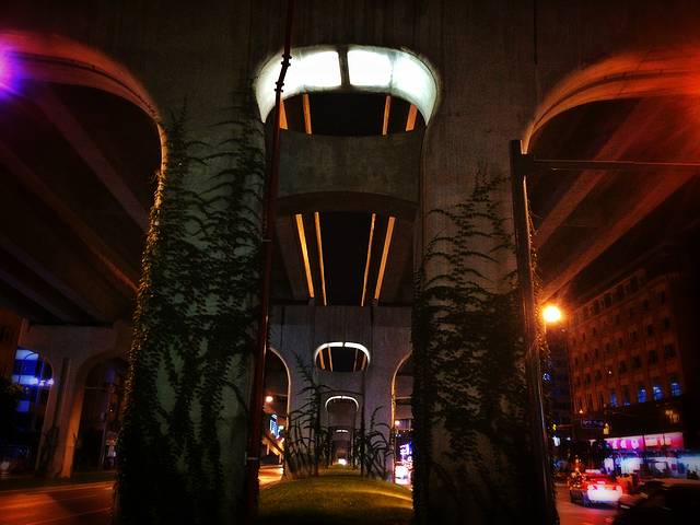 夜深沉!让我再度欣赏与感受高架桥巍峨雄壮的身姿,我是如此喜爱你。今夜,我与你相伴;明天,我与你挥别......