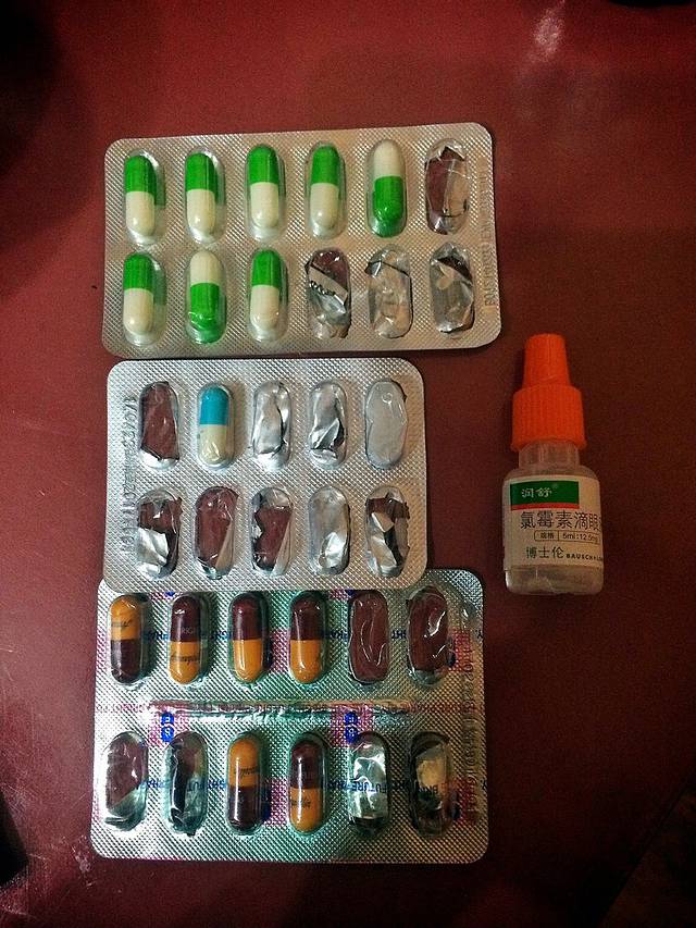 翻出包里、口袋里吃了一路的抗生素,阿莫西林、诺氟沙星、头孢、氯霉素滴眼液,在这里一并通通道别。