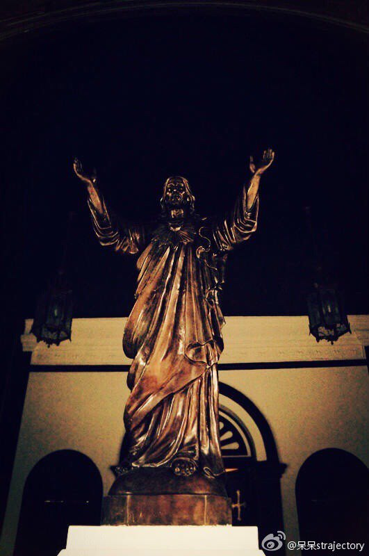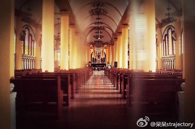说真的,走在这青砖瓦块上的感觉,特别不真实,这里很安静,就好像是一座没有人的宅子,其实,我也挺怕这个时候出现一个人,每次走进教堂,就感觉自己是一个。。。乱闯乱撞走错地方的人~