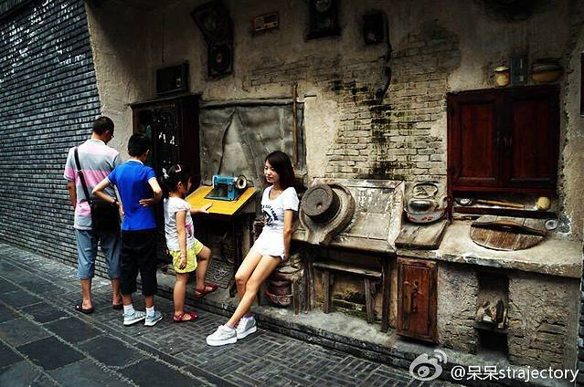 宽窄巷子的设计很有意思,沿途都是这样的雕塑,嵌在墙里,露出一半,专门就给我们这些喜欢拍照的人发挥!